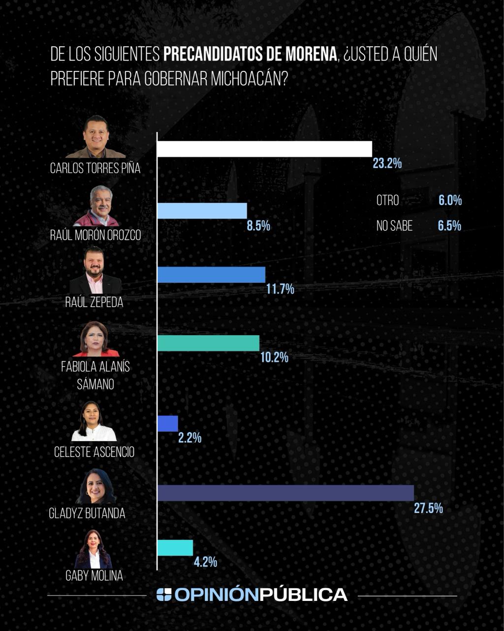 La cifra revela que Butanda no sólo es la mujer mejor posicionada a nivel estatal, sino también la que más votos obtendría en la contienda por Michoacán; esta diferencia confirma un posicionamiento sólido y una tendencia ascendente desde hace varios meses.