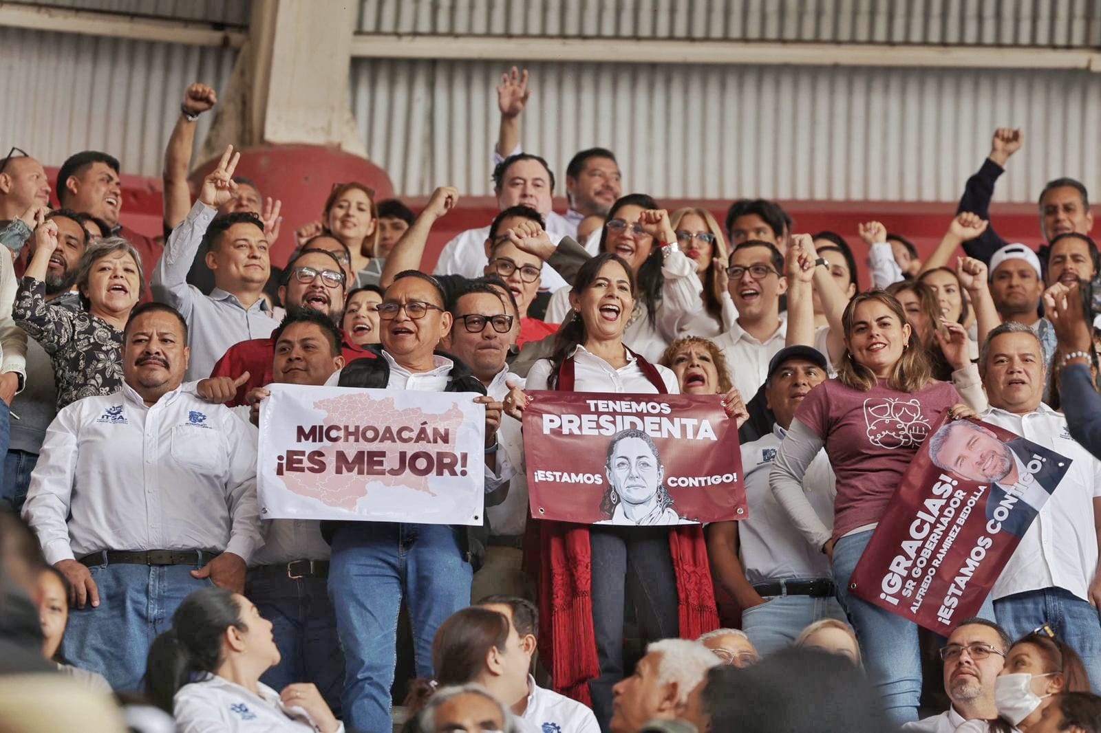 “Son más de 5 mil 200 millones de pesos los que llegan a las familias de las y los alumnos gracias a las becas para los diferentes niveles, más de mil 200 millones para la mejora de la infraestructura, sin olvidar el convenio U080 con el que ahora todas y todos los docentes reciben su salario puntual y completo”, puntualizó Gabriela Molina, tras el mensaje de la presidenta en el Pabellón Don Vasco.